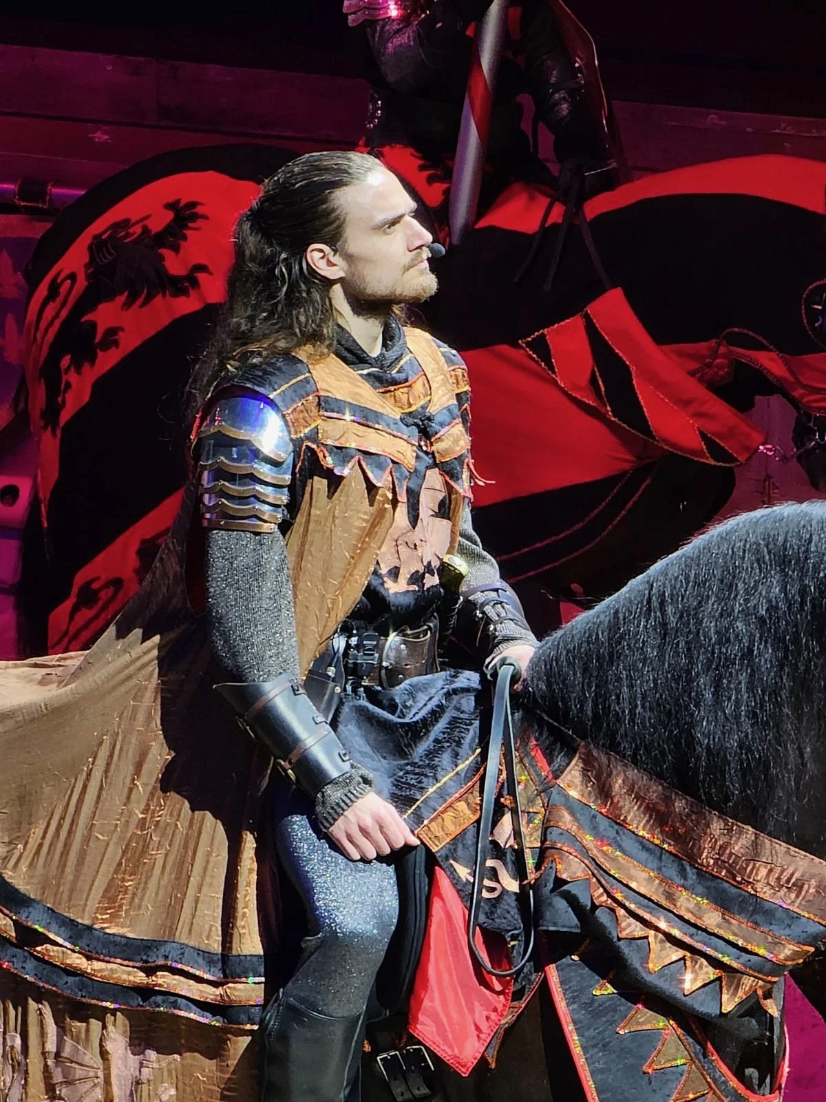 For those of you who don’t know, Medieval Times is a majesty of a show set in the medieval ages, starring royals, knights, horses, falcons, and feasts. Currently at Medieval Times I serve as the Show Cast Lead, performing as the Lord Marshal, Master Falconer and King. I feel a sense of home on horseback, and have quite a muscle when it comes to period performance.